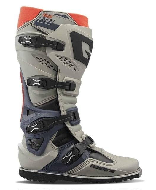 Gaerne SG-22 Gore-Tex Enduroは、オフロードモーターサイクル競技で10年以上にわたりトップライダーたちに支持されてきたSG-12を進化させた、最新のエンデューロ向けモトクロスブーツです。従来のSG-22の革新的な技術に加え、防水性と透湿性に優れたGore-Texを搭載し、あらゆる環境下での快適性を実現しました。